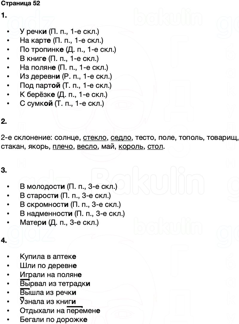 Правильный ответ к заданию ГДЗ Тренажёр русский язык 4 класс Тихомирова (к учебнику Канакина, Горецкий)Страницы, номер 52 бесплатно онлайн