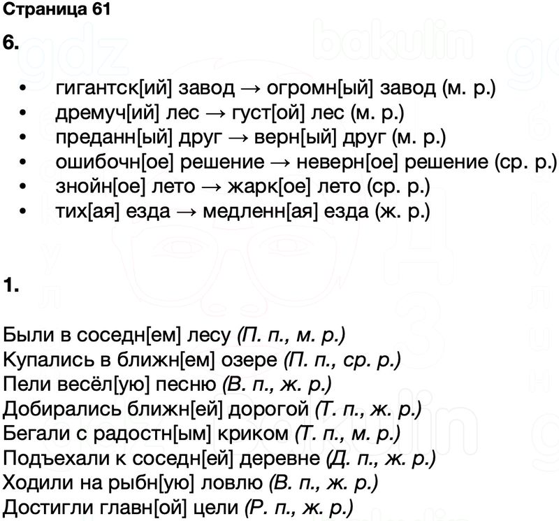 Правильный ответ к заданию ГДЗ Тренажёр русский язык 4 класс Тихомирова (к учебнику Канакина, Горецкий)Страницы, номер 61 бесплатно онлайн