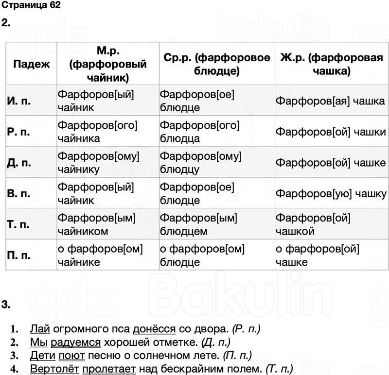 Правильный ответ к заданию ГДЗ Тренажёр русский язык 4 класс Тихомирова (к учебнику Канакина, Горецкий)Страницы, номер 62 бесплатно онлайн