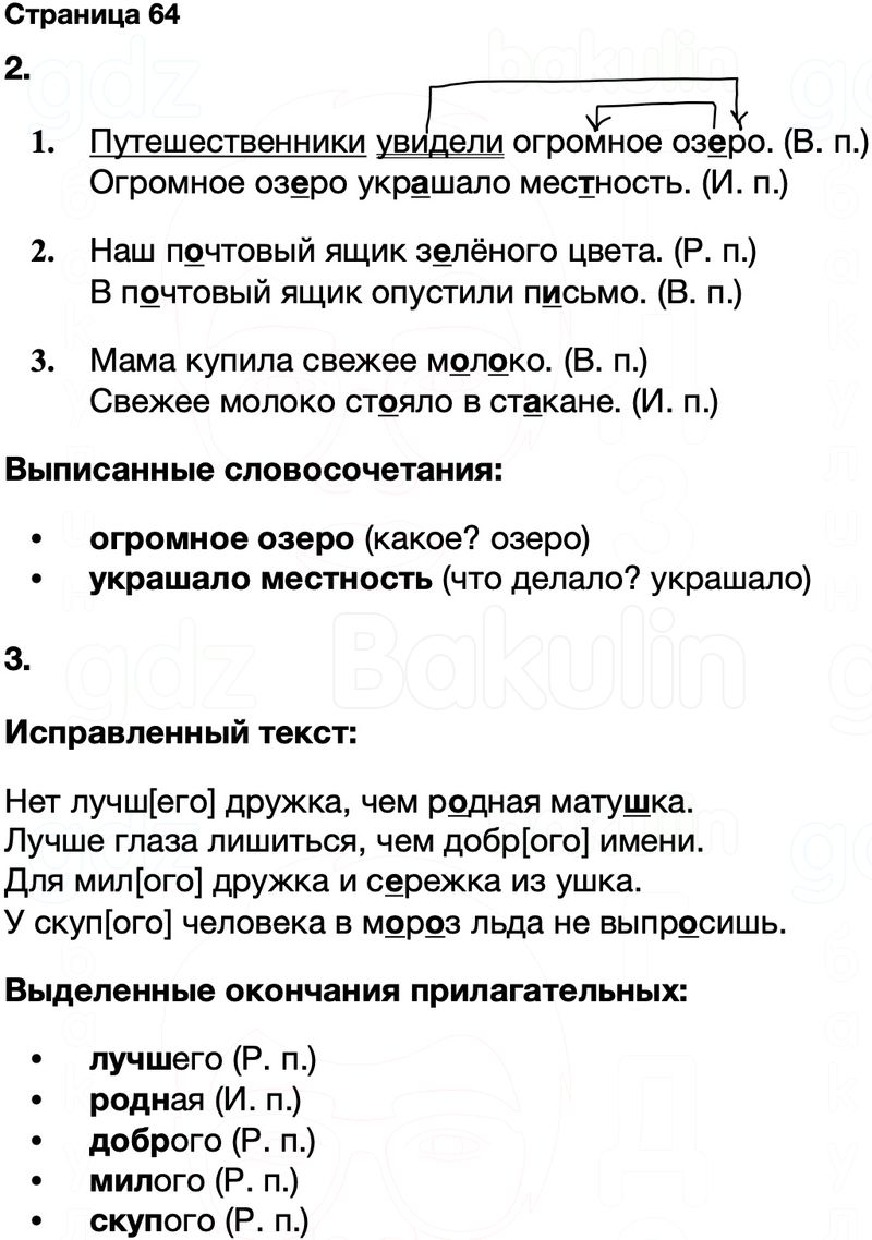 Правильный ответ к заданию ГДЗ Тренажёр русский язык 4 класс Тихомирова (к учебнику Канакина, Горецкий)Страницы, номер 64 бесплатно онлайн