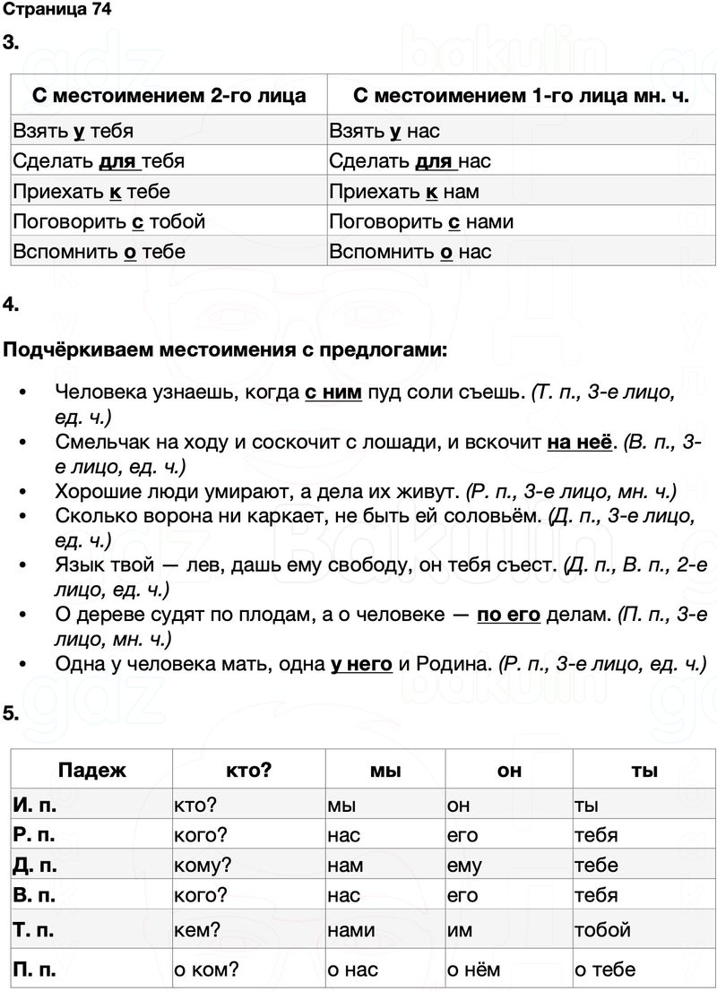 Правильный ответ к заданию ГДЗ Тренажёр русский язык 4 класс Тихомирова (к учебнику Канакина, Горецкий)Страницы, номер 74 бесплатно онлайн