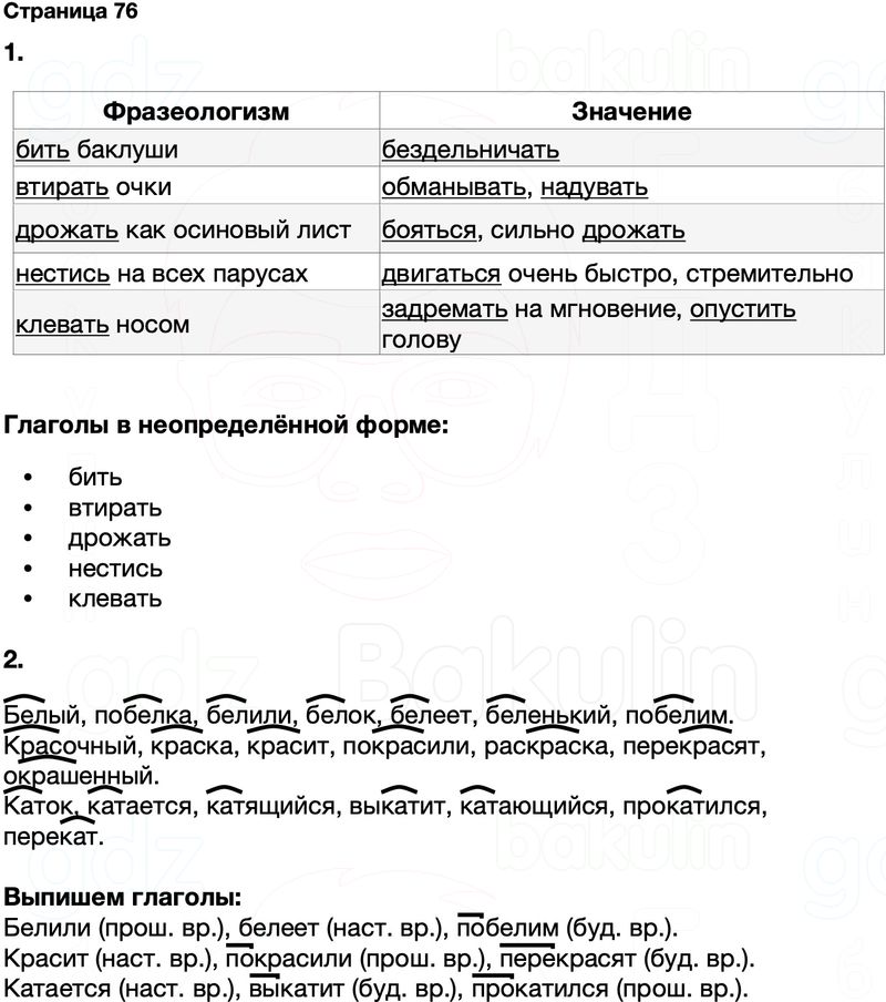 Правильный ответ к заданию ГДЗ Тренажёр русский язык 4 класс Тихомирова (к учебнику Канакина, Горецкий)Страницы, номер 76 бесплатно онлайн