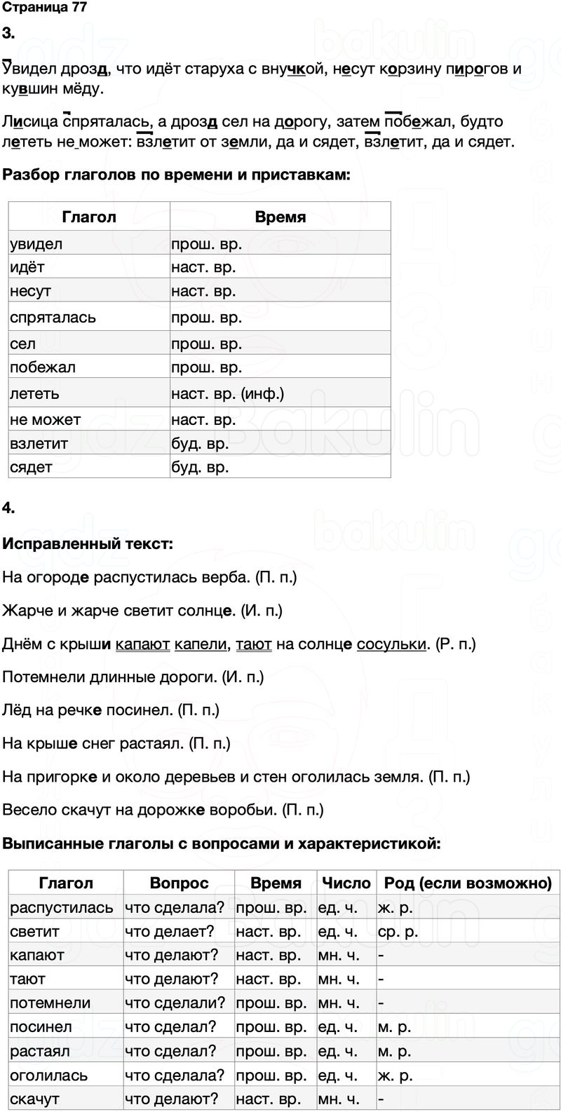 Правильный ответ к заданию ГДЗ Тренажёр русский язык 4 класс Тихомирова (к учебнику Канакина, Горецкий)Страницы, номер 77 бесплатно онлайн