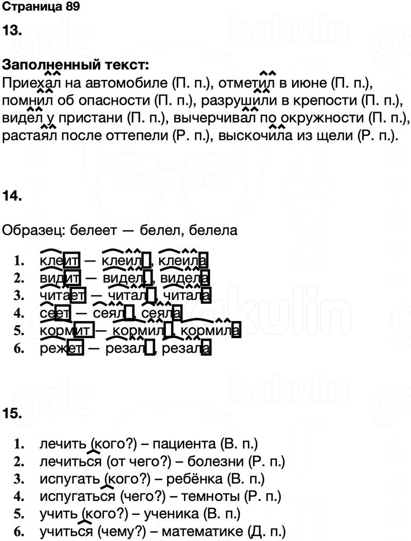 Правильный ответ к заданию ГДЗ Тренажёр русский язык 4 класс Тихомирова (к учебнику Канакина, Горецкий)Страницы, номер 89 бесплатно онлайн