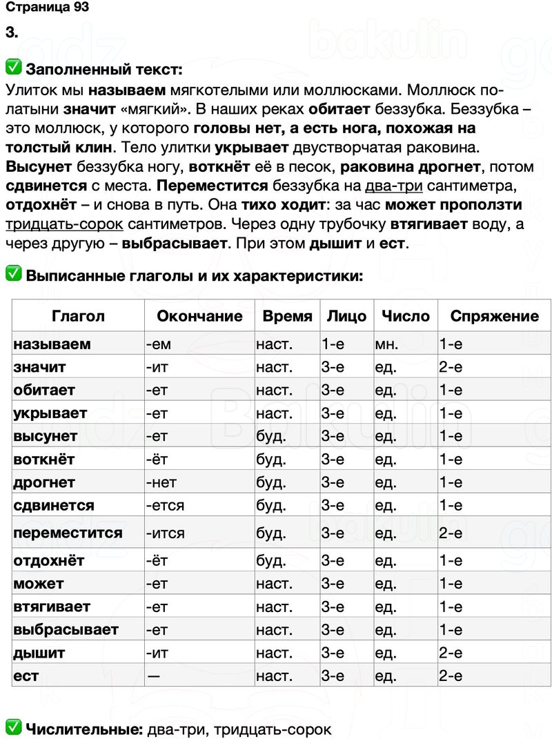 Правильный ответ к заданию ГДЗ Тренажёр русский язык 4 класс Тихомирова (к учебнику Канакина, Горецкий)Страницы, номер 93 бесплатно онлайн