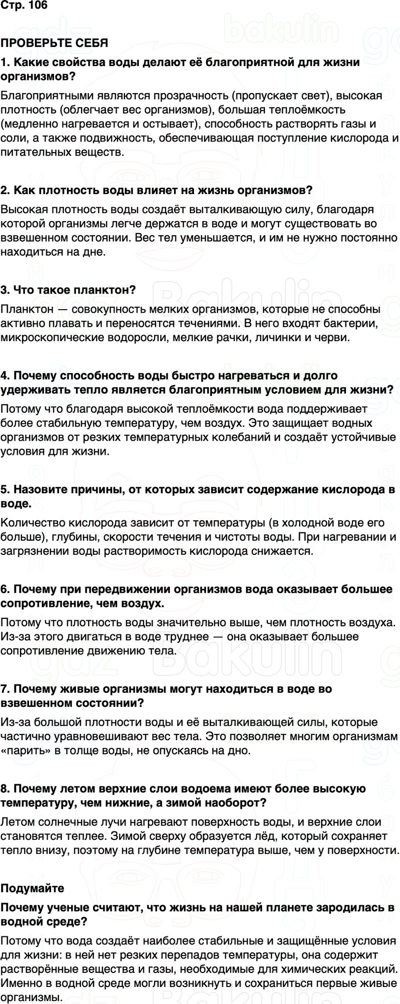 1. Какие свойства воды делают её благоприятной для жизни организмов?