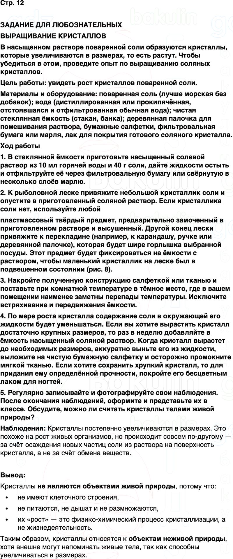 5. Регулярно записывайте и фотографируйте свои наблюдения. После окончания наблюдений, оформите и представьте их в классе. Обсудите, можно ли считать кристаллы телами живой природы?