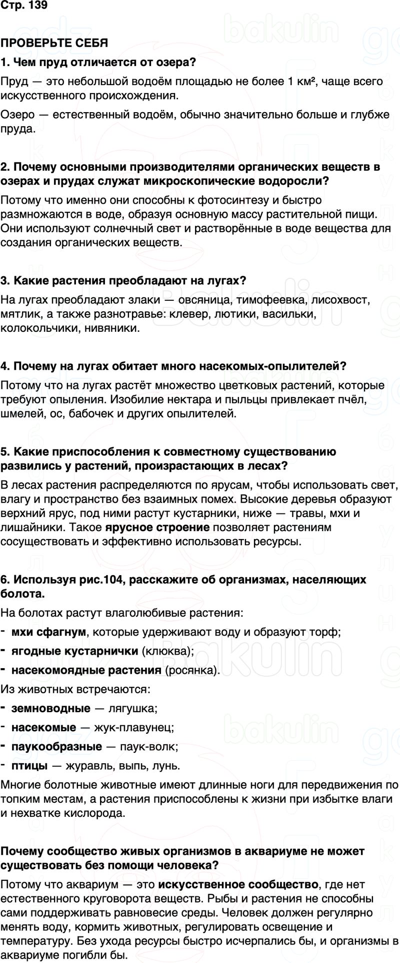 6. Используя рис.104, расскажите об организмах, населяющих болота.