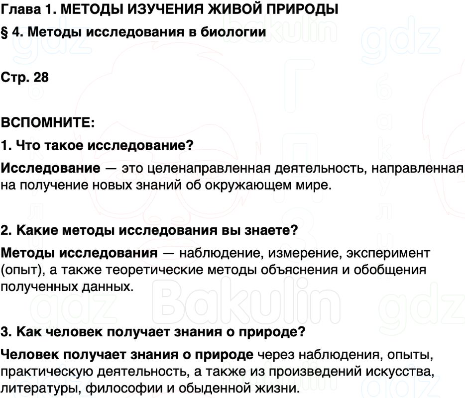 Глава 1. МЕТОДЫ ИЗУЧЕНИЯ ЖИВОЙ ПРИРОДЫ § 4. Методы исследования в биологии