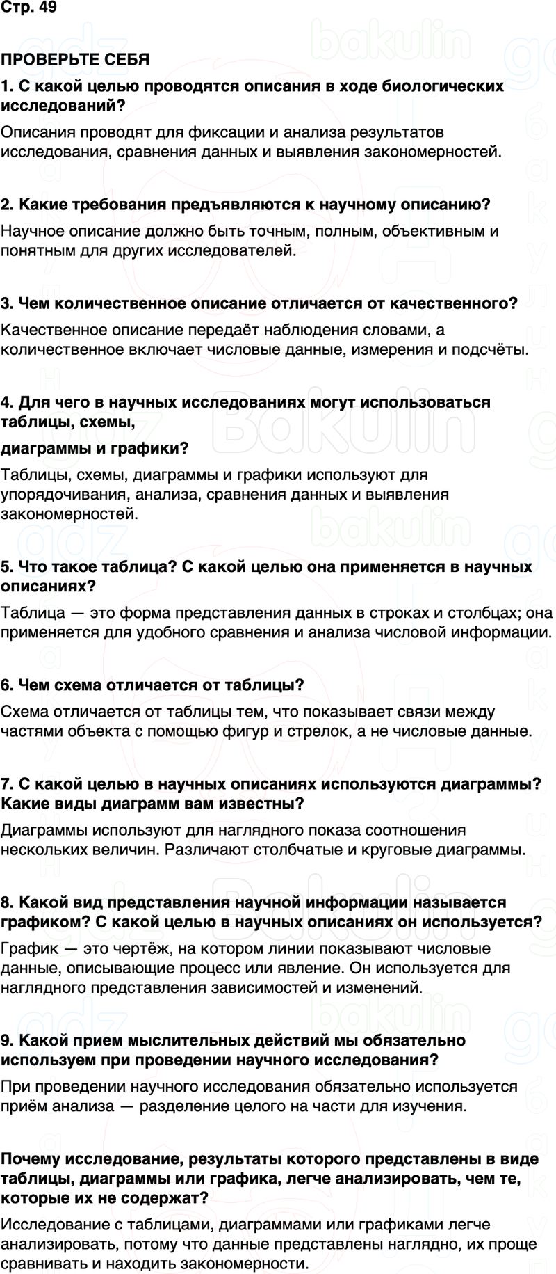 1. С какой целью проводятся описания в ходе биологических исследований?