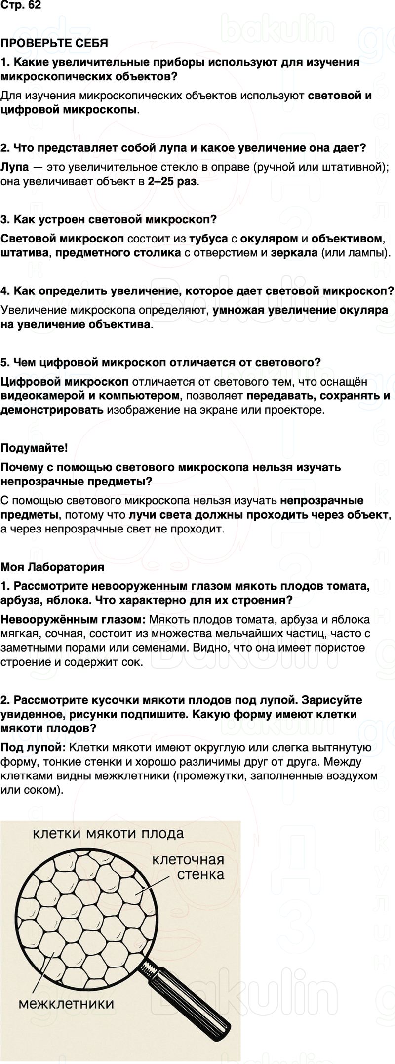 1. Рассмотрите невооруженным глазом мякоть плодов томата, арбуза, яблока. Что характерно для их строения?