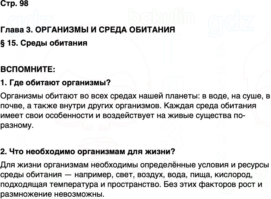 Глава 3. ОРГАНИЗМЫ И СРЕДА ОБИТАНИЯ § 15. Среды обитания