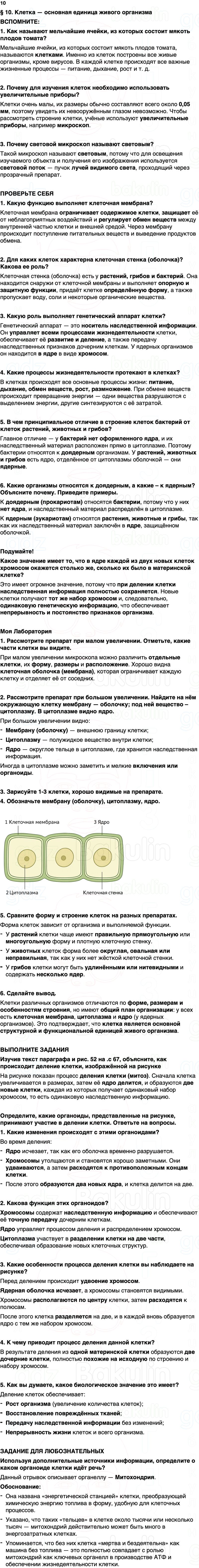 4. Какие процессы жизнедеятельности протекают в клетках?