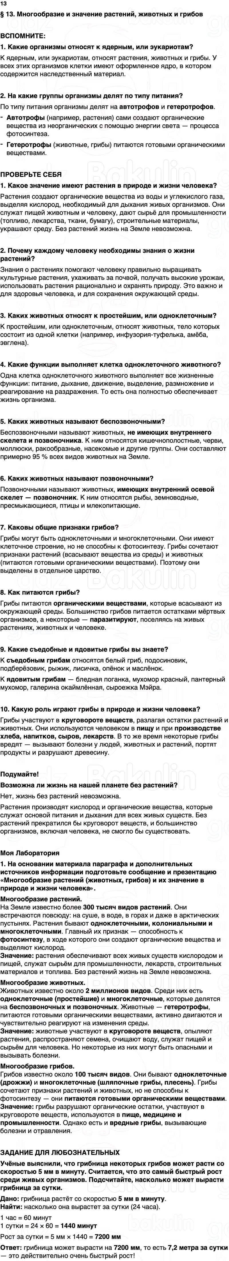 Параграф 13. Многообразие и значение растений, животных и грибов