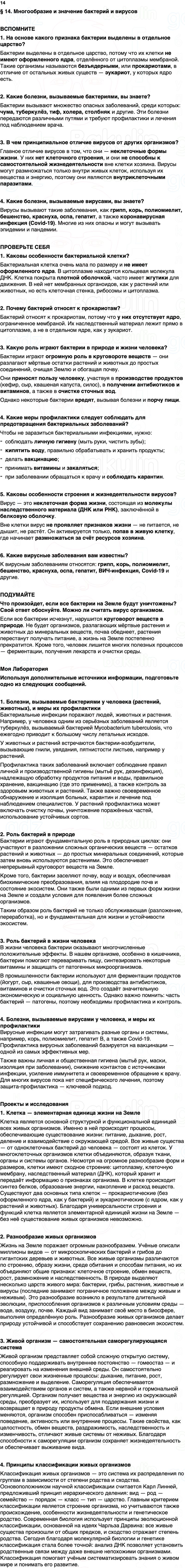Параграф 14. Многообразие и значение бактерий и вирусов