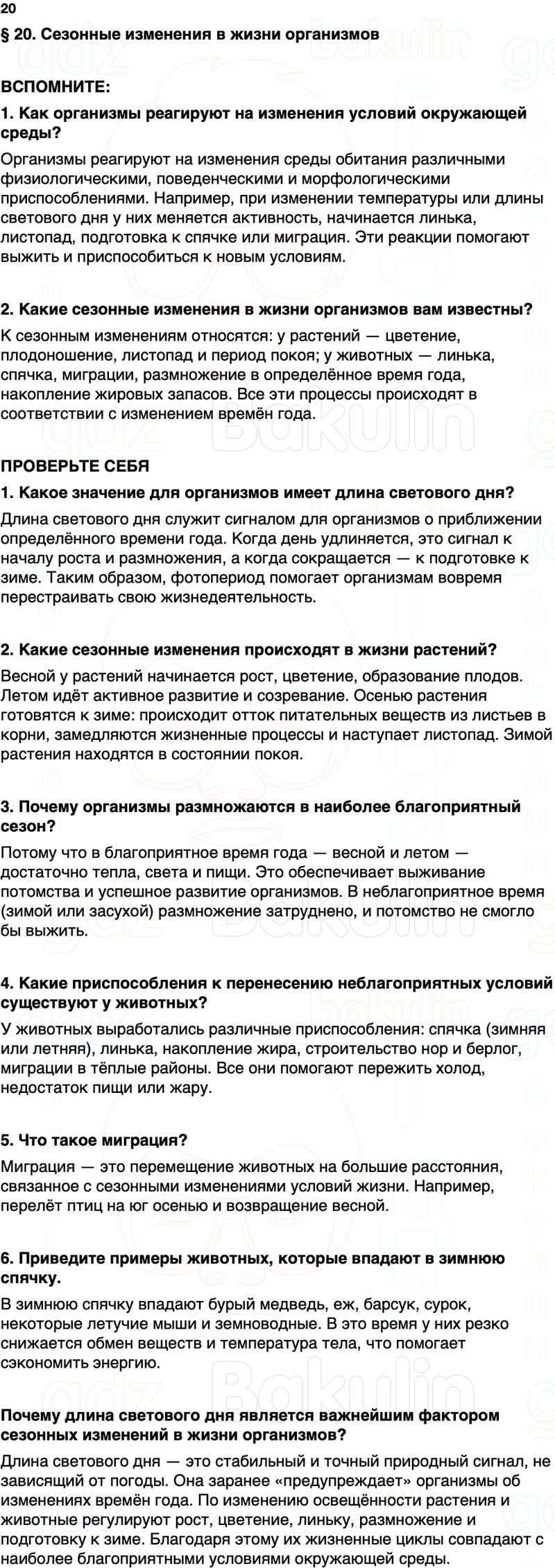 2. Какие сезонные изменения в жизни организмов вам известны?