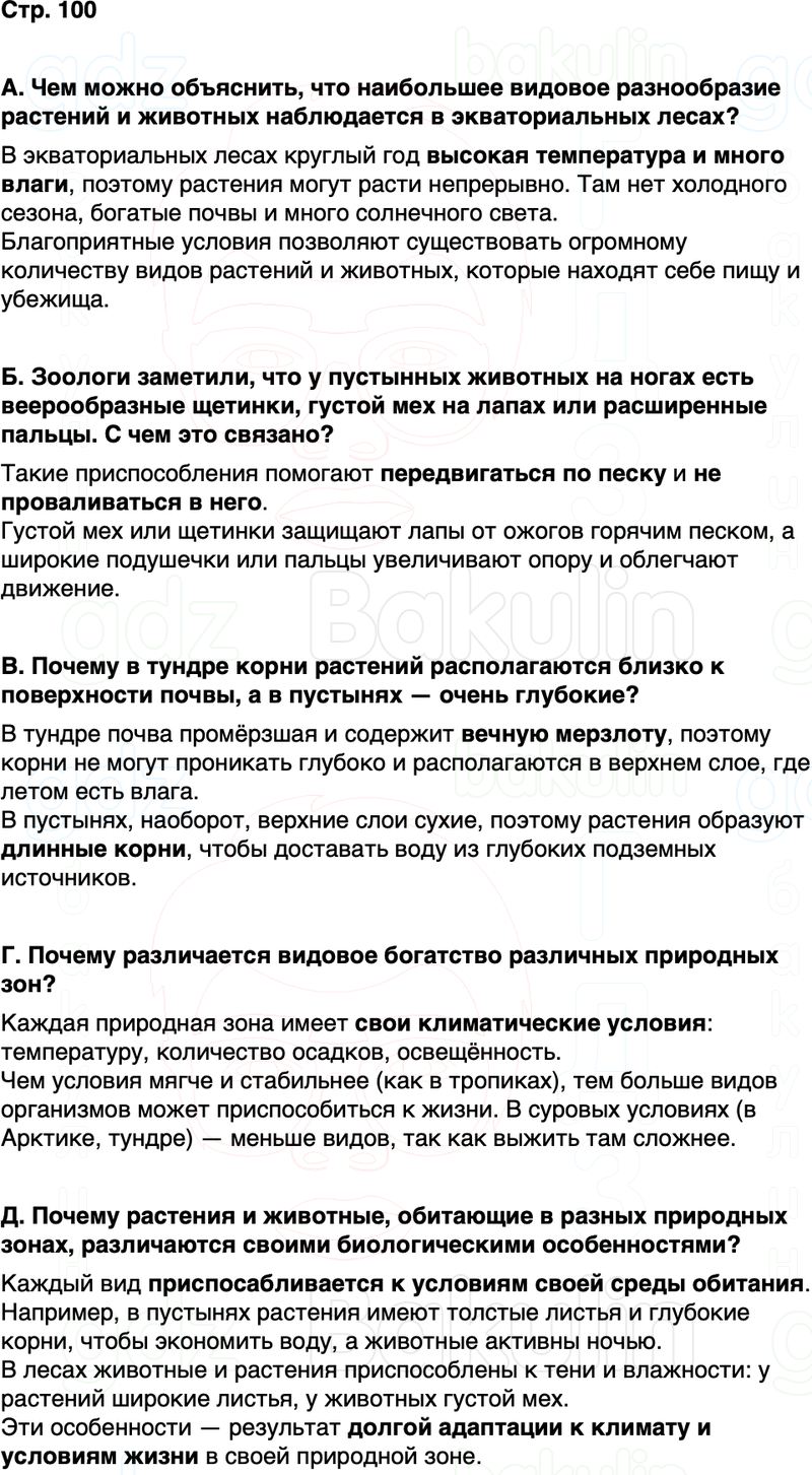 Д. Почему растения и животные, обитающие в разных природных зонах, например в широколиственном лесу и пустыне, различаютс. своими биологическими особенностями?