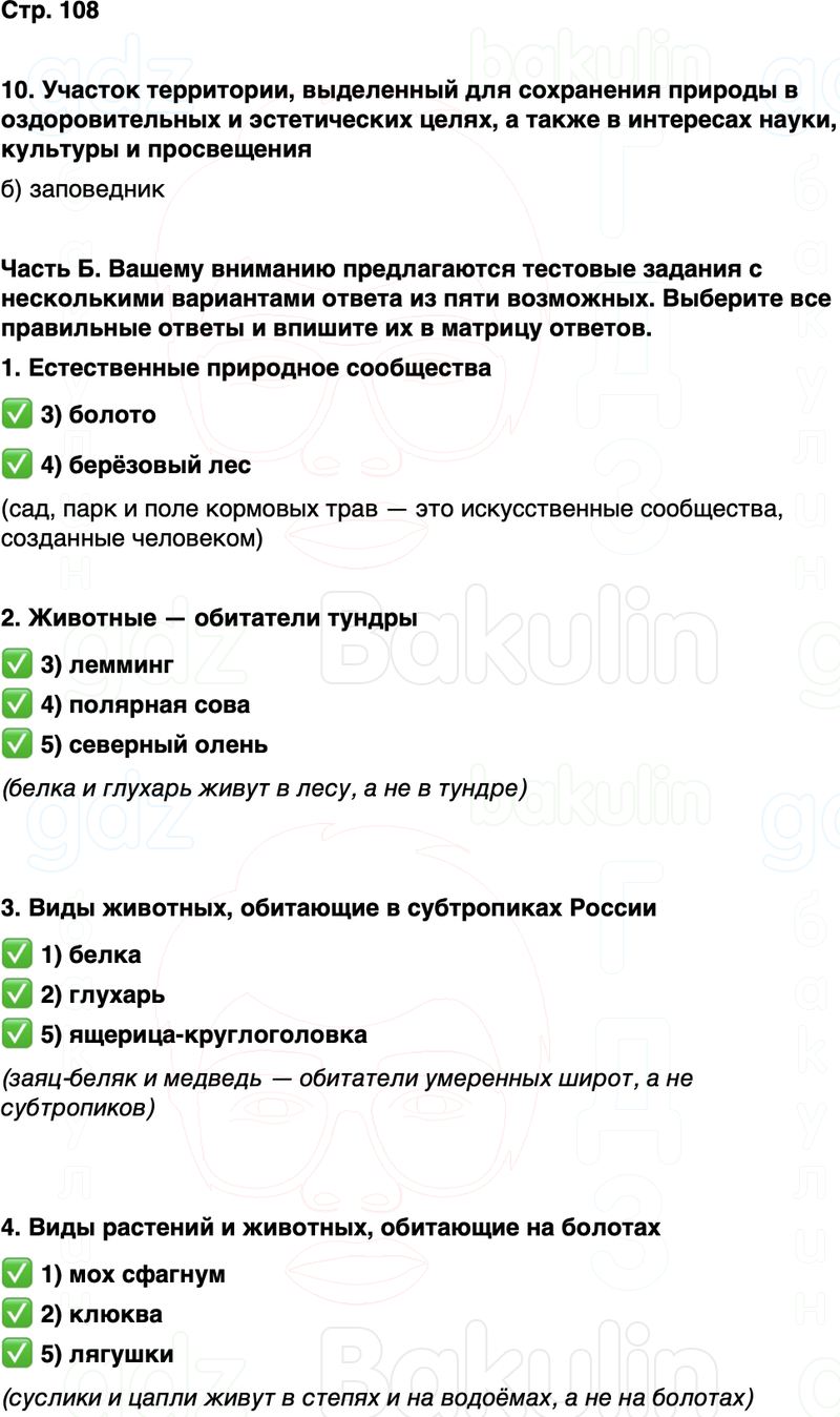 Часть Б. Вашему вниманию предлагаются тестовые задания с не- сколькими вариантами ответа из пяти возможных. Выберите все пра-