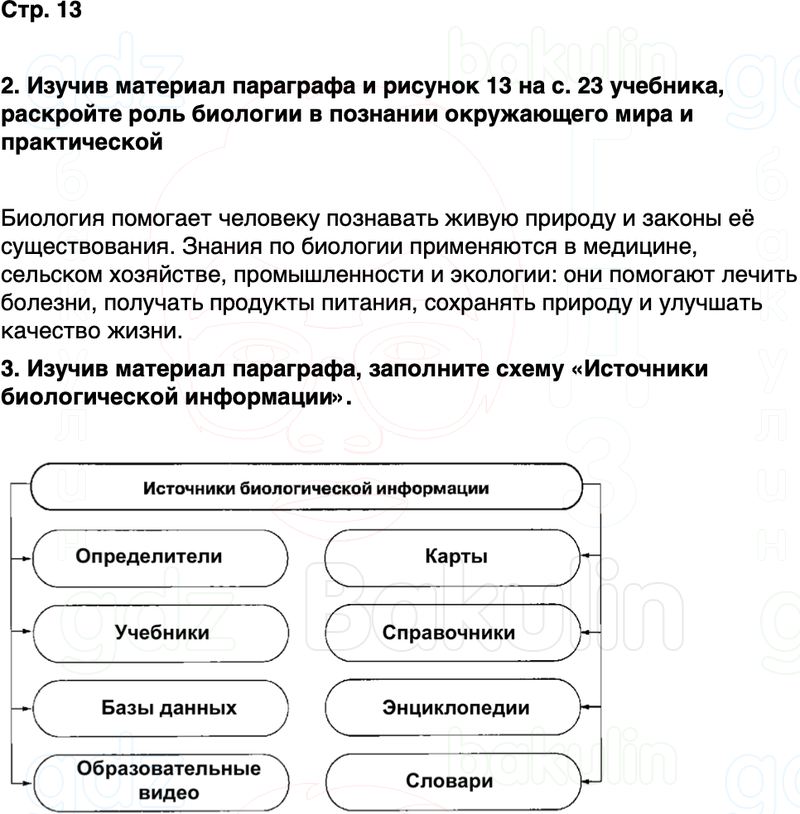 2. Изучив материал параграфа и рисунок 13 на с. 23 учебника, раскройте роль биологии в познании окружающего мира и практической