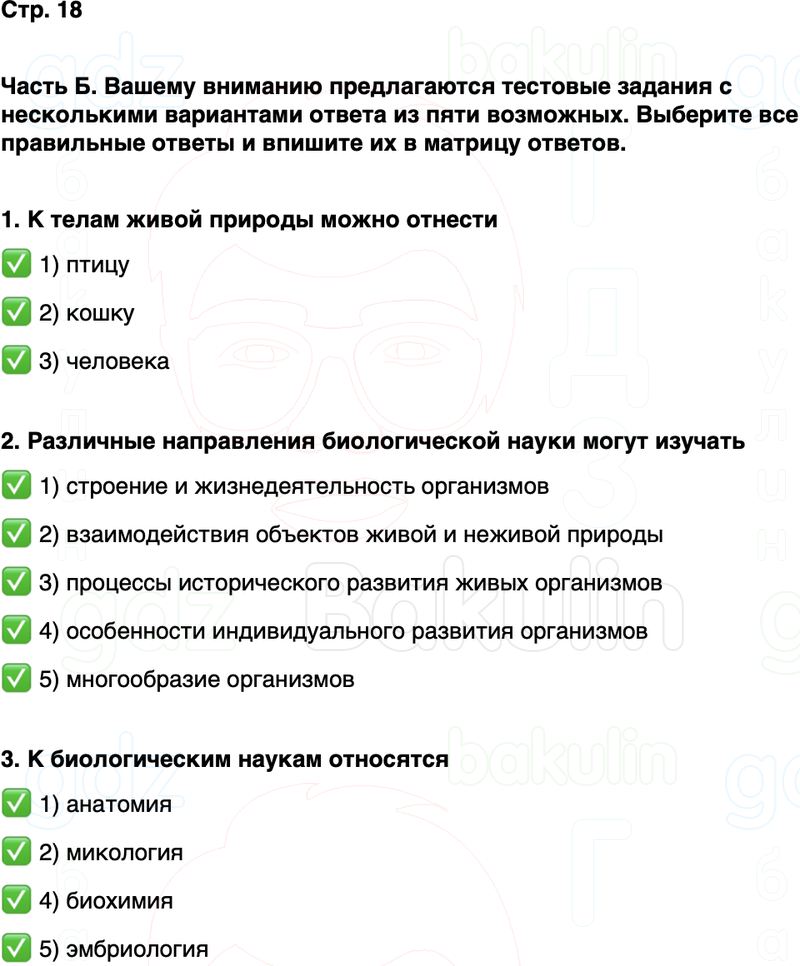 Часть Б. Вашему вниманию предлагаются тестовые задания с несколькими вариантами ответа из пяти возможных. Выберите все правильные ответы и впишите их в матрицу ответов.
