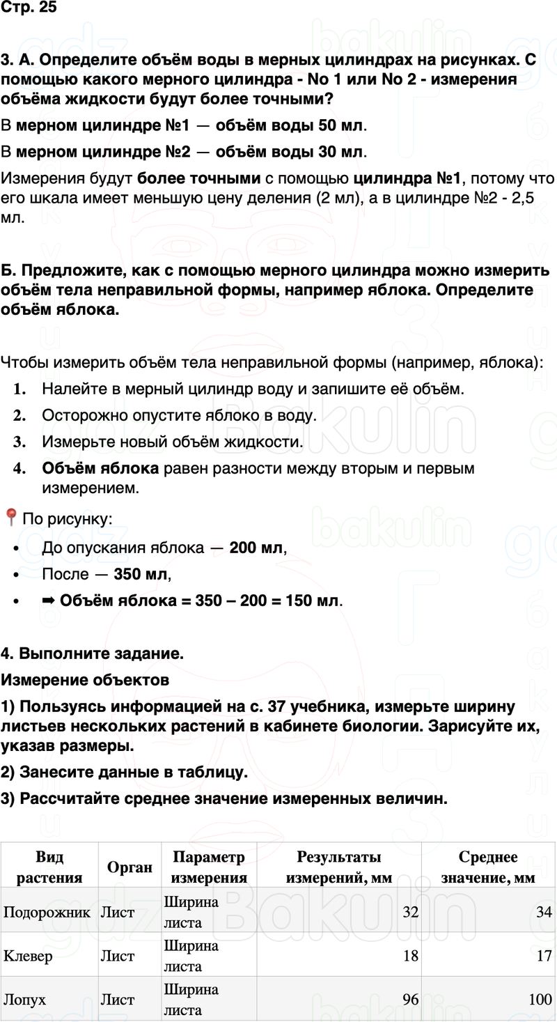 Б. Предложите, как с помощью мерного цилиндра можно измерить объём тела неправильной формы, например яблока. Определите объём яблока.
