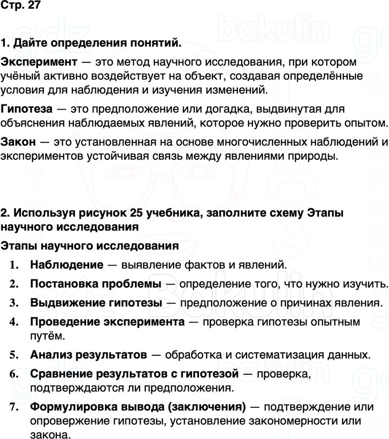 1. Дайте определения понятий. Эксперимент - Гипотеза - Закон -
