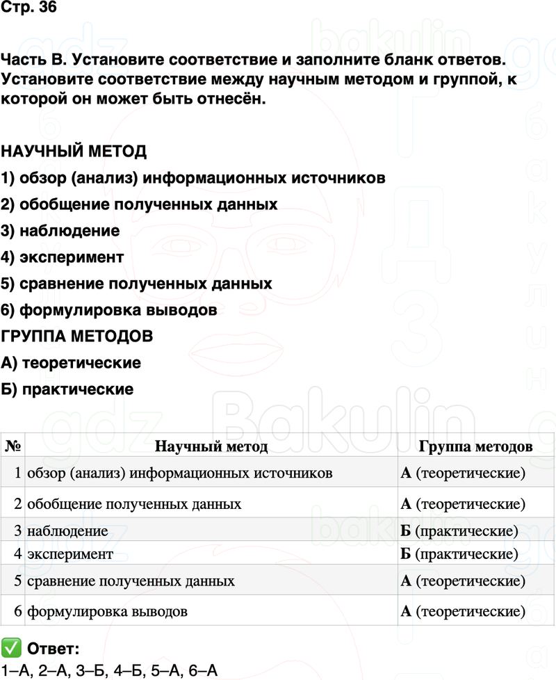 Часть В. Установите соответствие и заполните бланк ответов. Установите соответствие между научным методом и группой, к которой он может быть отнесён.