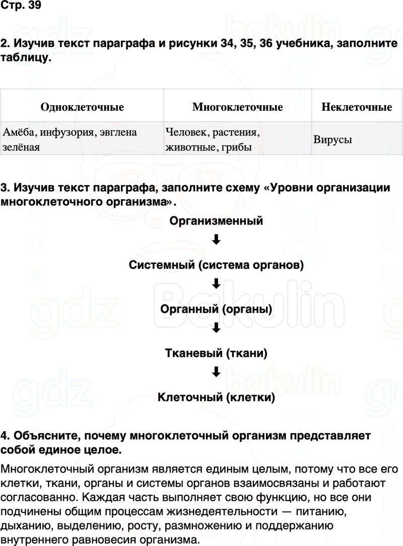 4. Объясните, почему многоклеточный организм представляет собой единое целое.
