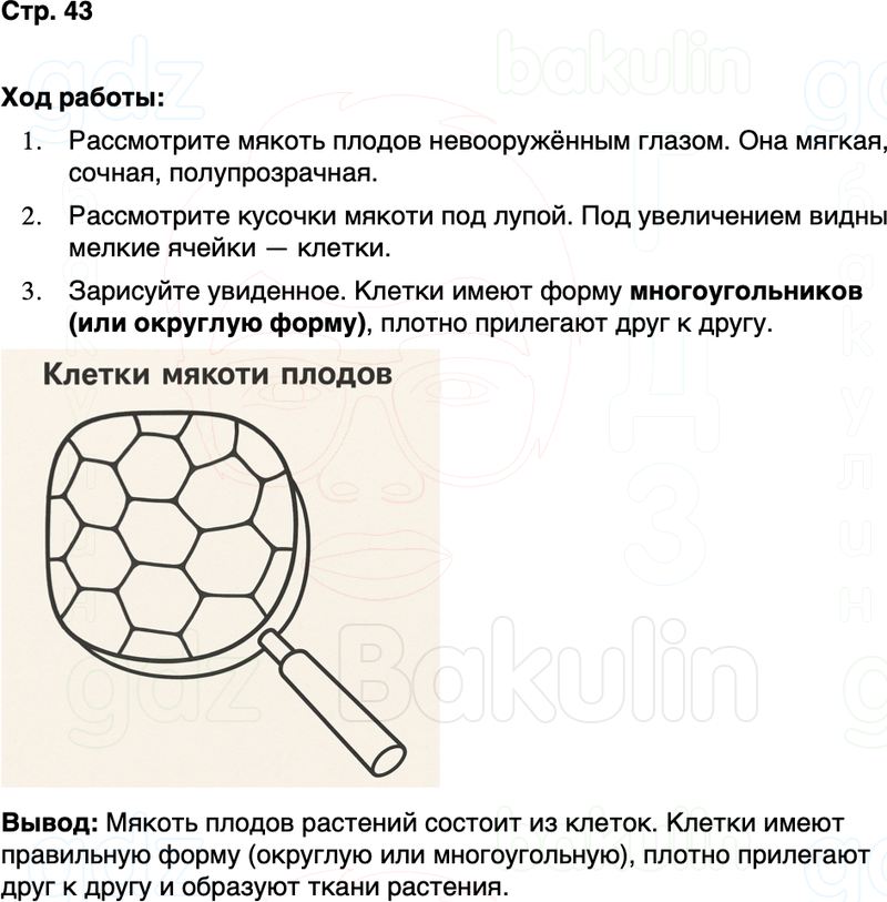 3) Зарисуйте увиденное, рисунки подпишите. Какую форму имеют клетки мякоти плодов?