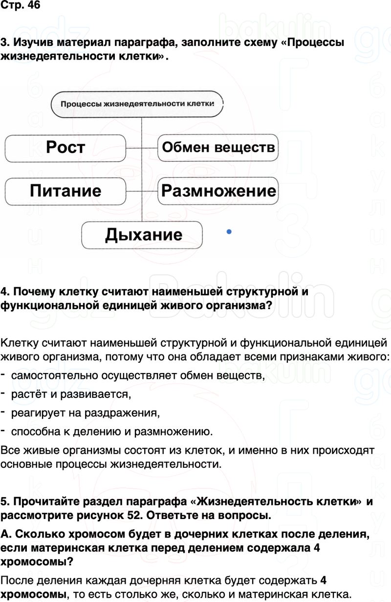 5. Прочитайте раздел параграфа «Жизнедеятельность клетки» и рассмотрите рисунок 52. Ответьте на вопросы.