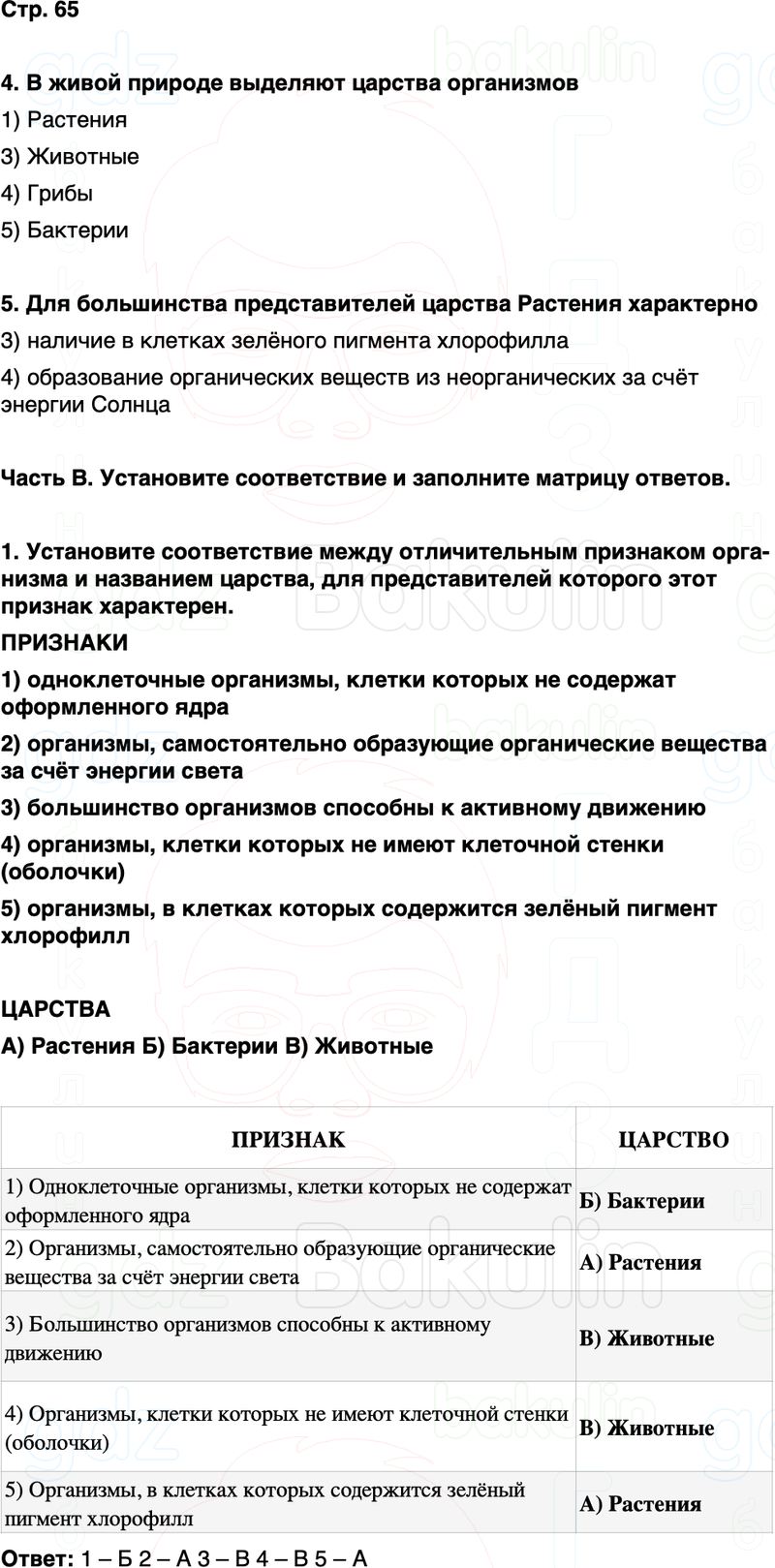1. Установите соответствие между отличительным признаком орга- низма и названием царства, для представителей которого этот признак характерен.