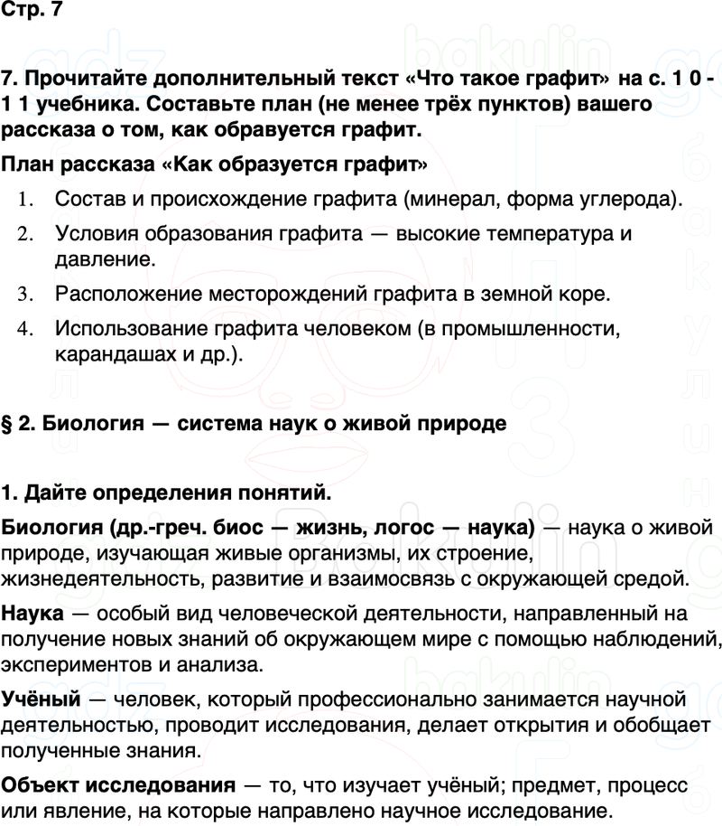 7. Прочитайте дополнительный текст «Что такое графит» на с. 1 0 - 1 1 учебника. Составьте план (не менее трёх пунктов) вашего рассказа о том, как обравуется графит.