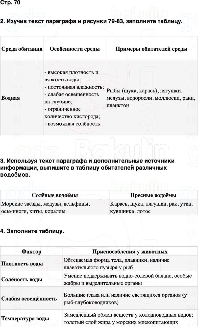 3. Используя текст параграфа и дополнительные источники информации, выпишите в таблицу обитателей различных водоёмов.