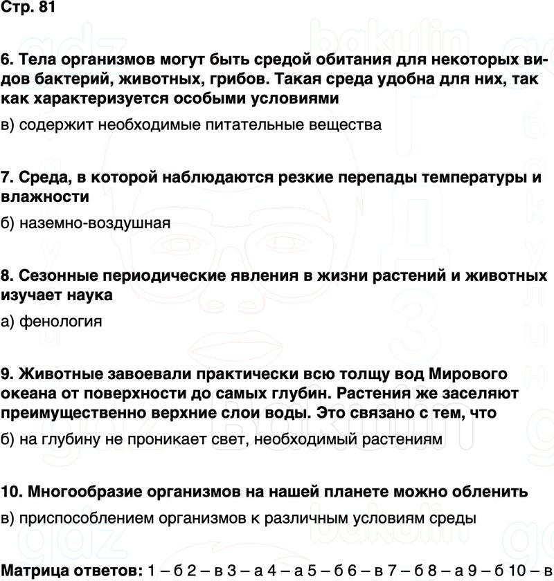 6. Тела организмов могут быть средой обитания для некоторых ви- дов бактерий, животных, грибов. Такая среда удобна для них, так как характеризуется особыми условиями