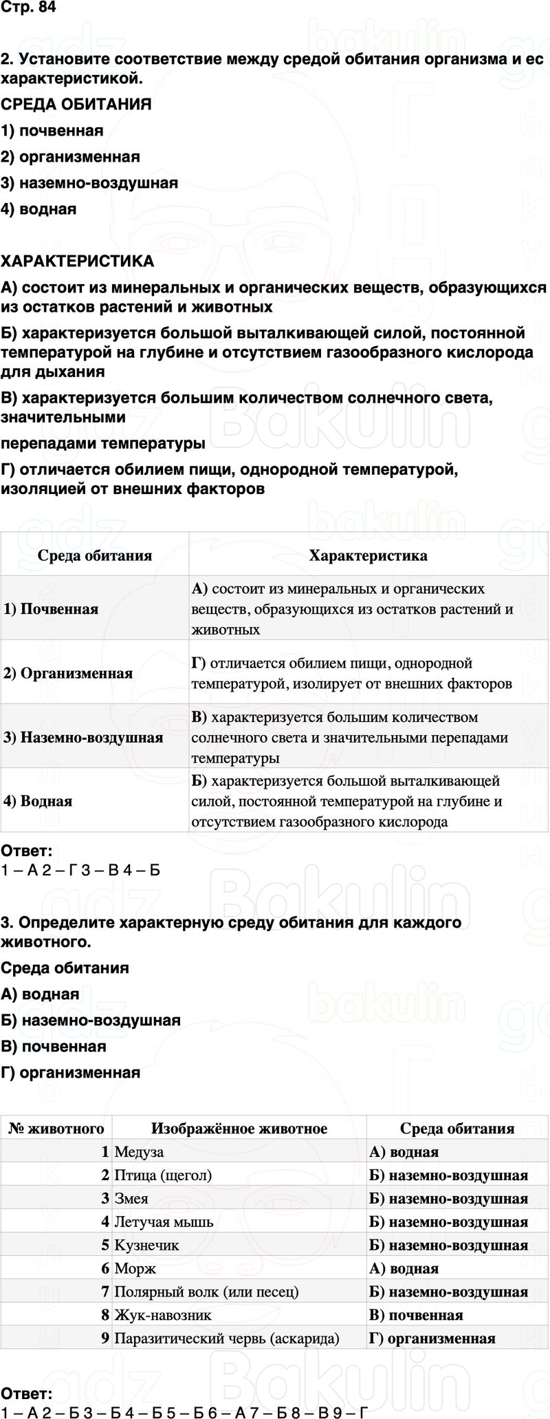 2. Установите соответствие между средой обитания организма и ес характеристикой.