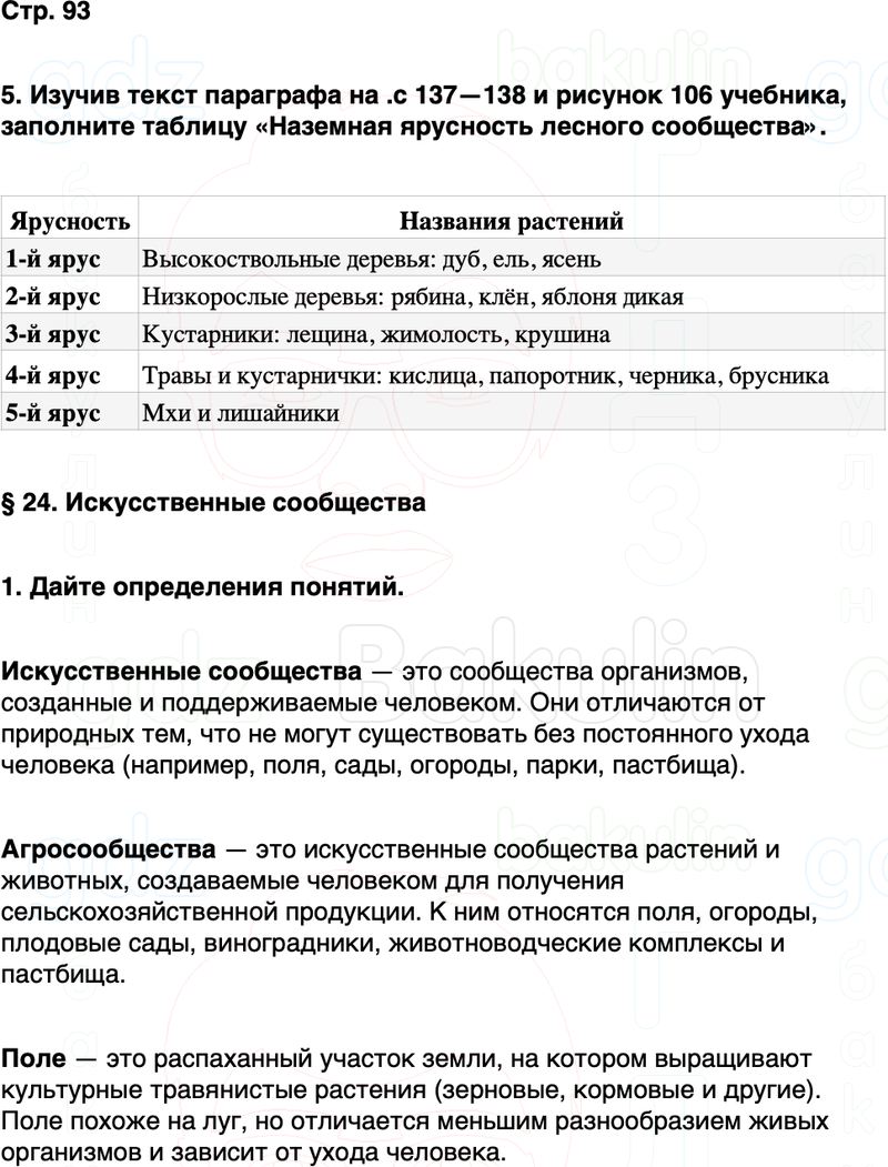 5. Изучив текст параграфа на .с 137—138 и рисунок 106 учебника, заполните таблицу «Наземная ярусность лесного сообщества».