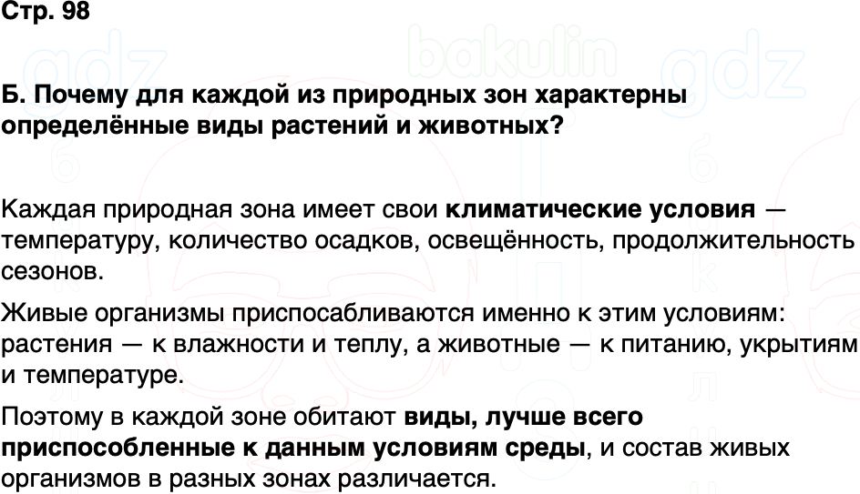 Б. Почему для каждой из природных зон характерны определённые виды растений и животных?