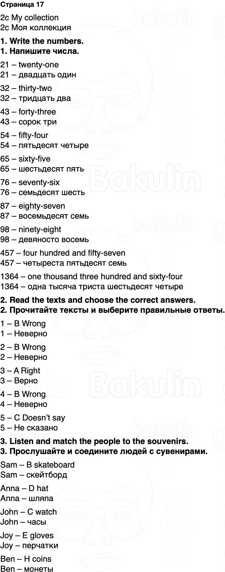 3. Прослушайте и соедините людей с сувенирами.