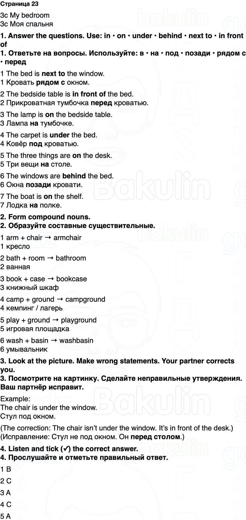 1. Ответьте на вопросы. Используйте: в • на • под • позади • рядом с • перед