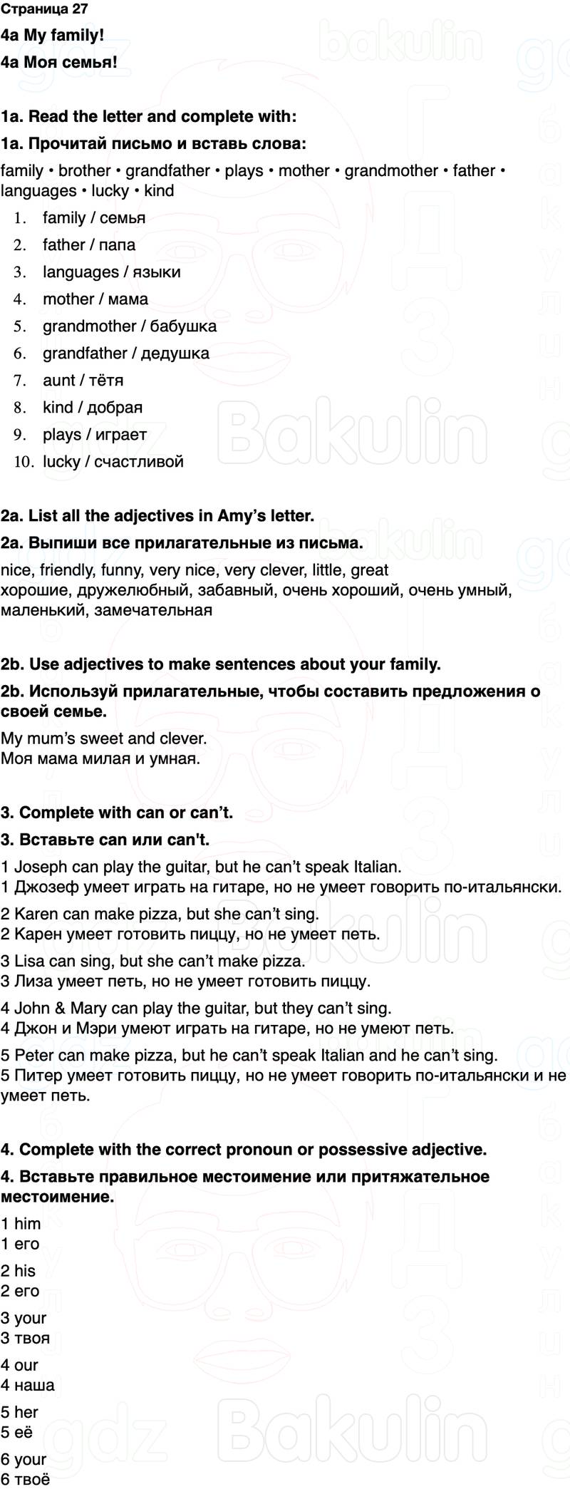 2b. Используй прилагательные, чтобы составить предложения о своей семье.
