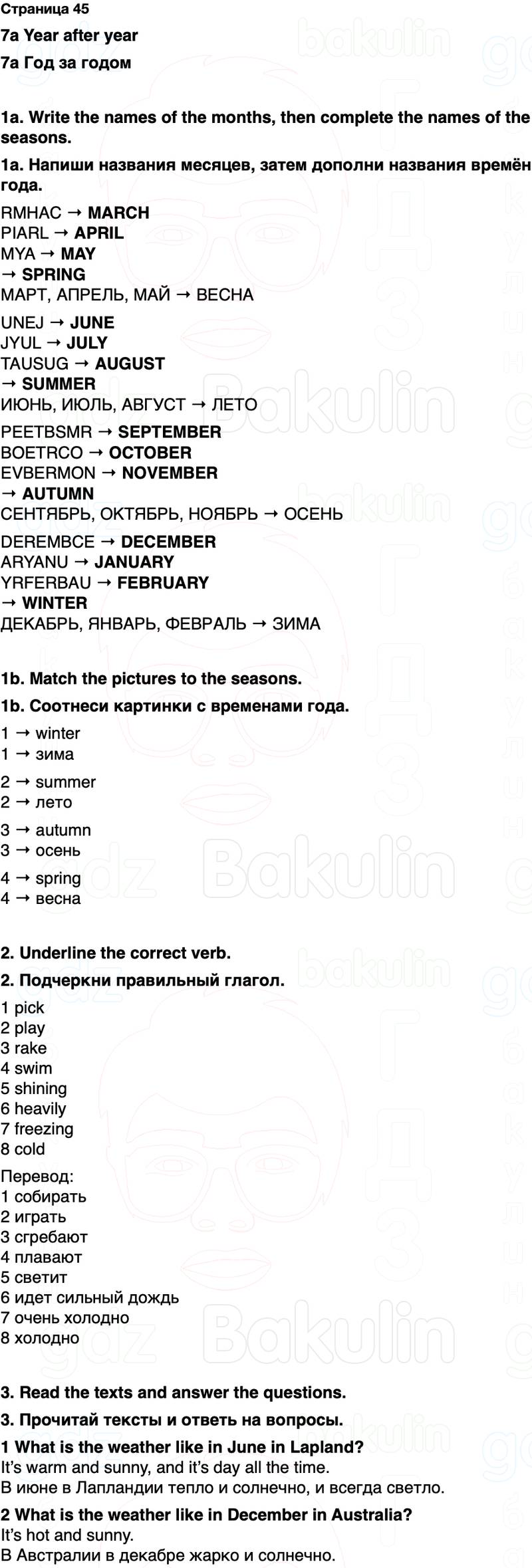 1a. Напиши названия месяцев, затем дополни названия времён года.