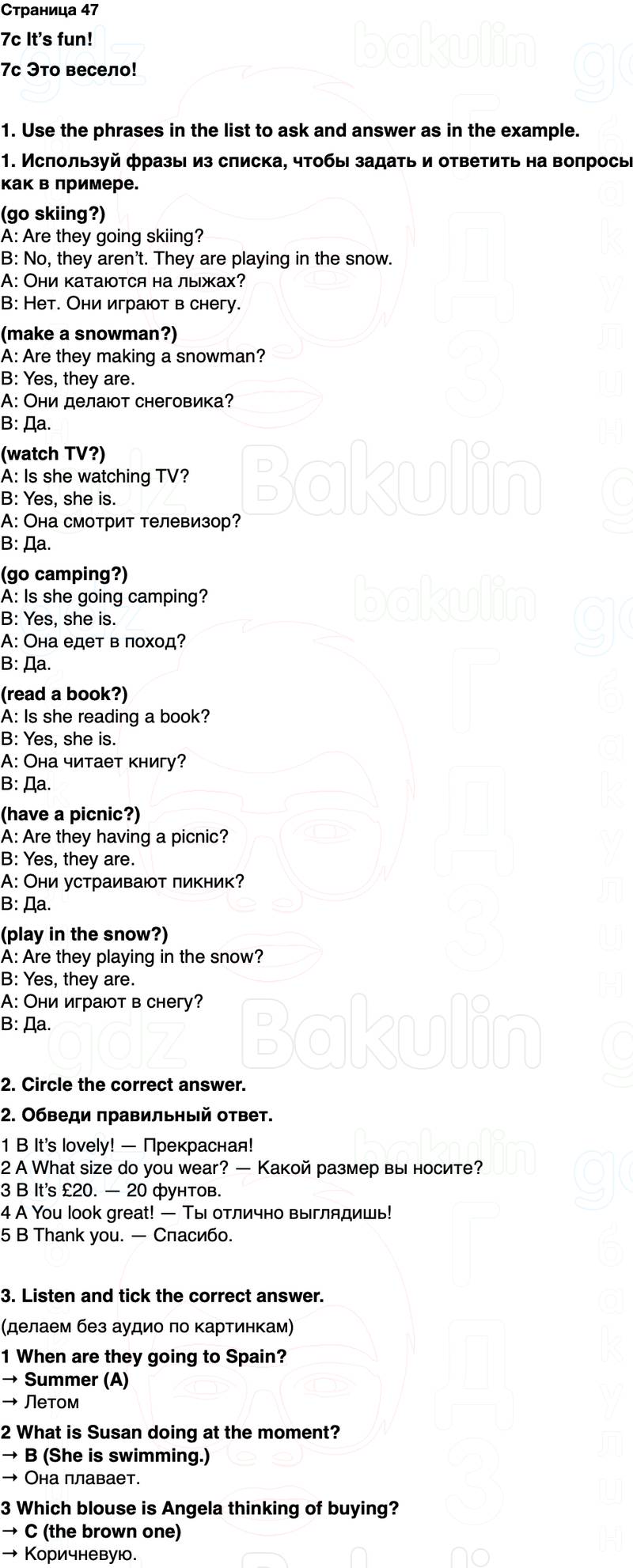 1. Используй фразы из списка, чтобы задать и ответить на вопросы как в примере.