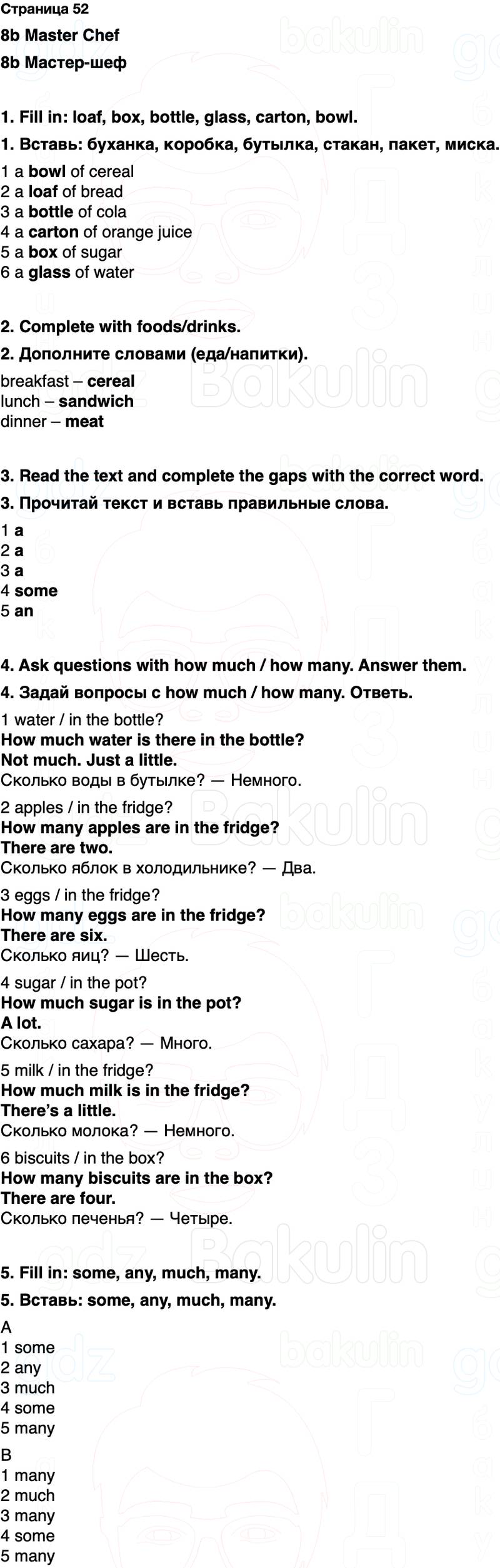 5. Вставь: some, any, much, many.