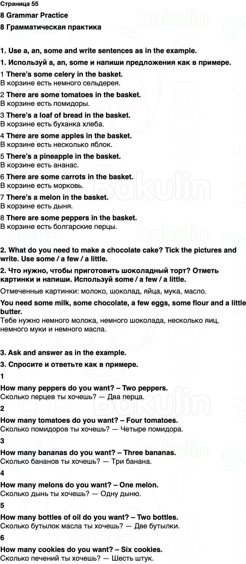 2. Что нужно, чтобы приготовить шоколадный торт? Отметь картинки и напиши. Используй some / a few / a little.