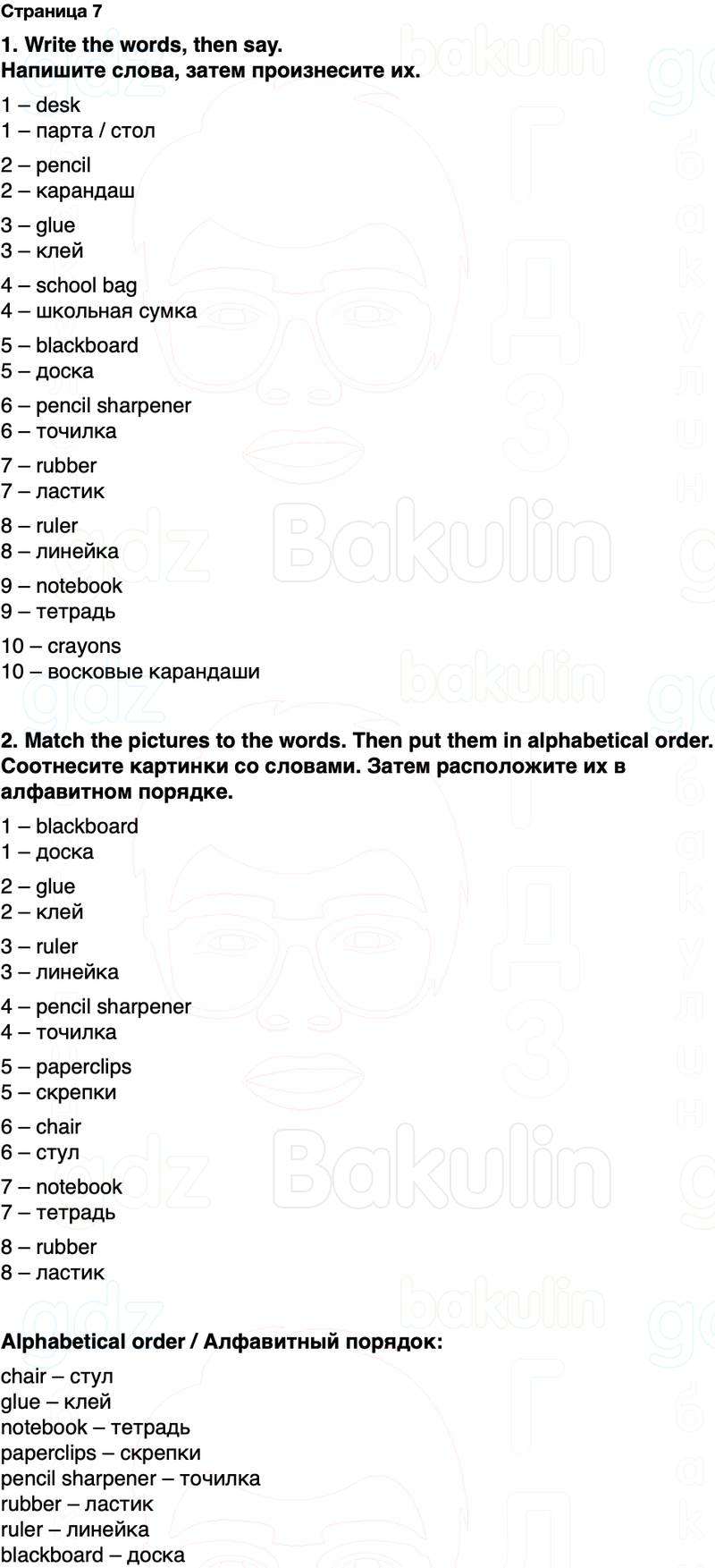 2. Match the pictures to the words. Then put them in alphabetical order. Соотнесите картинки со словами. Затем расположите их в алфавитном порядке.