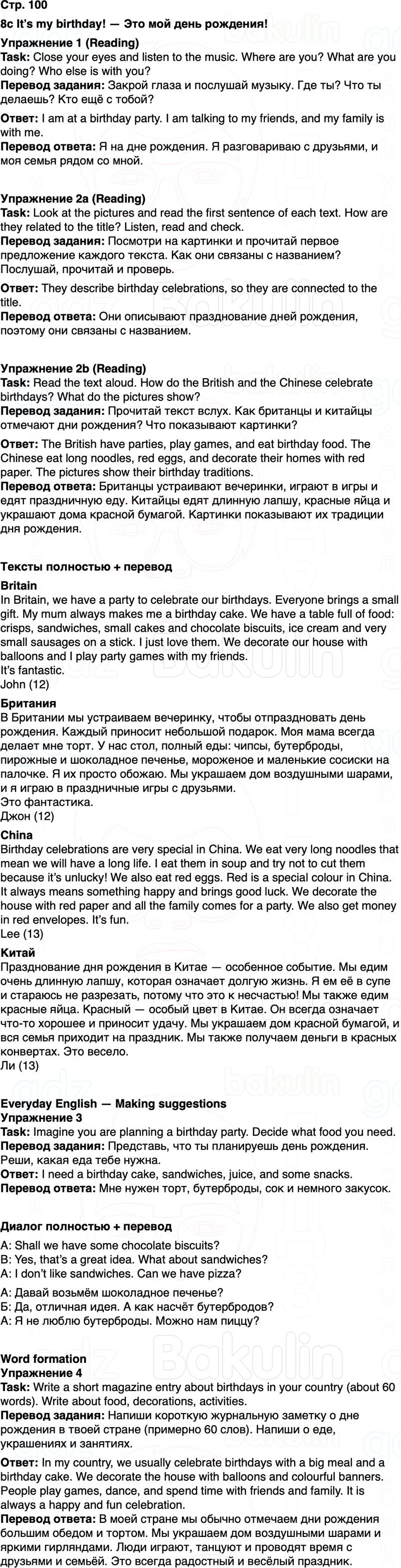 Перевод задания: Прочитай текст вслух. Как британцы и китайцы отмечают дни рождения? Что показывают картинки?