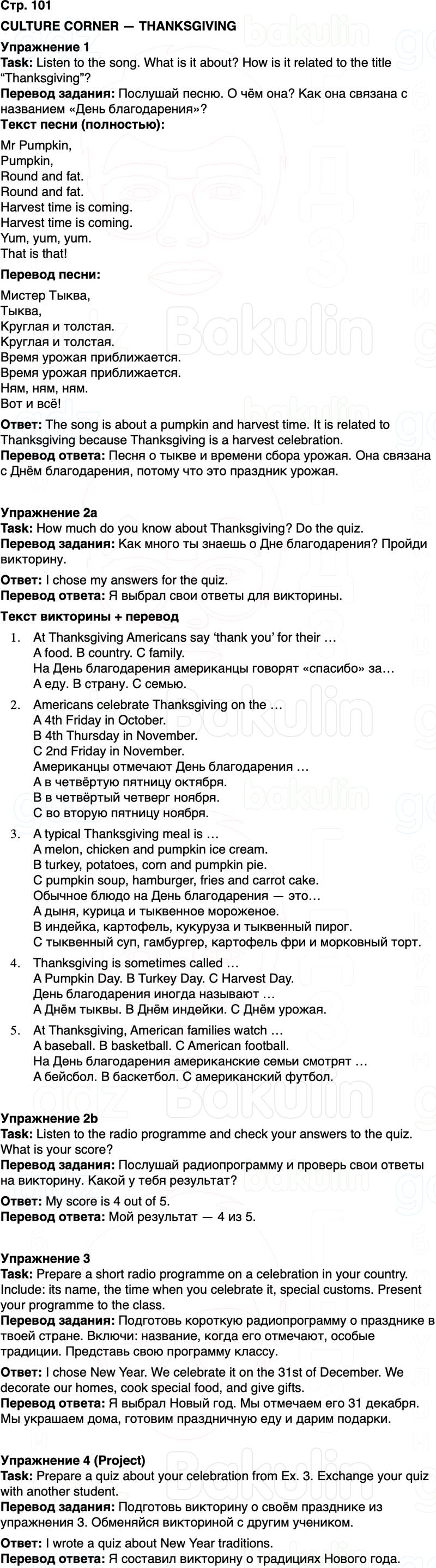 Перевод задания: Послушай песню. О чём она? Как она связана с названием «День благодарения»?