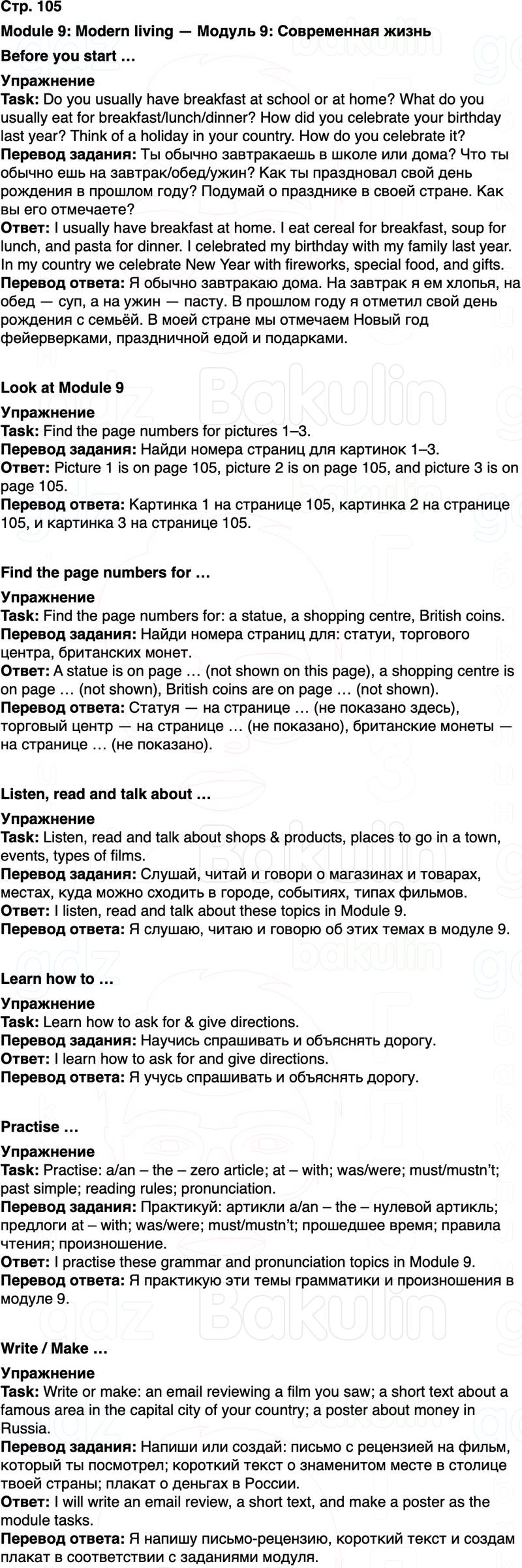 Перевод ответа: Картинка 1 на странице 105, картинка 2 на странице 105, и картинка 3 на странице 105.