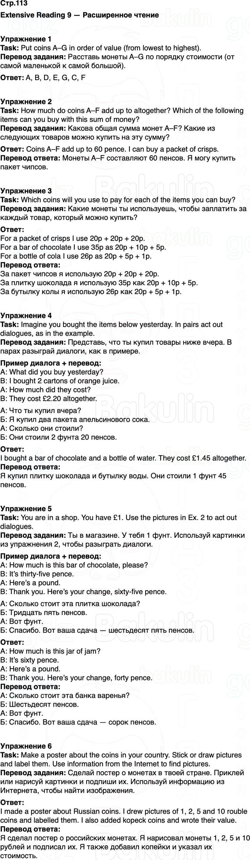 Перевод задания: Какова общая сумма монет A–F? Какие из следующих товаров можно купить на эту сумму?