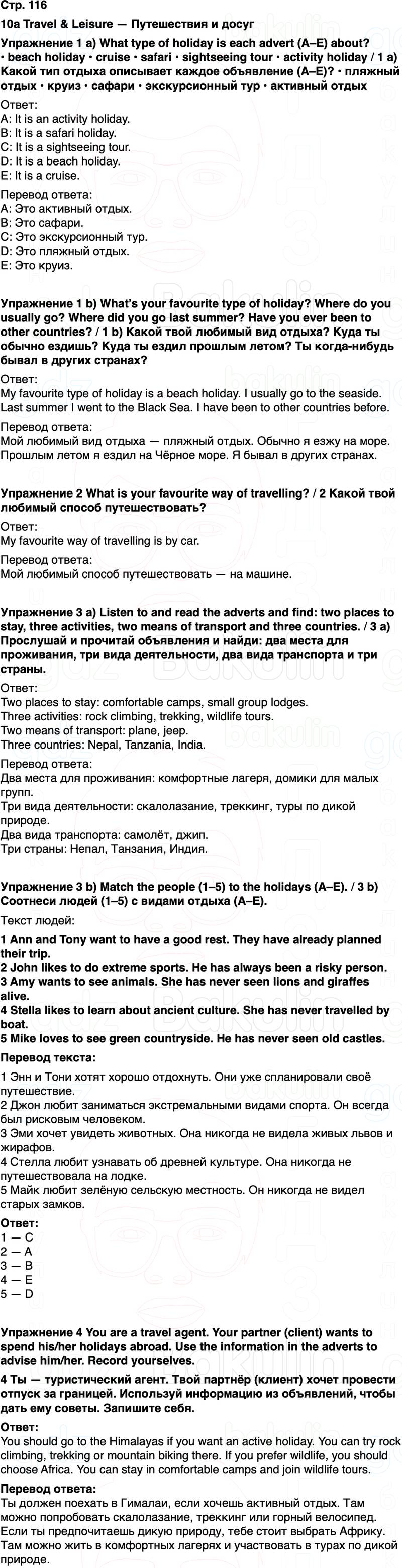 Упражнение 3 b) Match the people (1–5) to the holidays (A–E). / 3 b) Соотнеси людей (1–5) с видами отдыха (A–E).